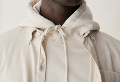 Vous nous avez remonté que le principal problème de vos sweats à capuche, c’est la déformation. On a donc choisi une densité de maille de 420g/m2 suffisamment lourde pour limiter la détente. Et après avoir retourné le problème dans tous les sens, on a supprimé la poche kangourou : avec un tissu 100% coton, cette poche finit toujours par se détendre et bailler.