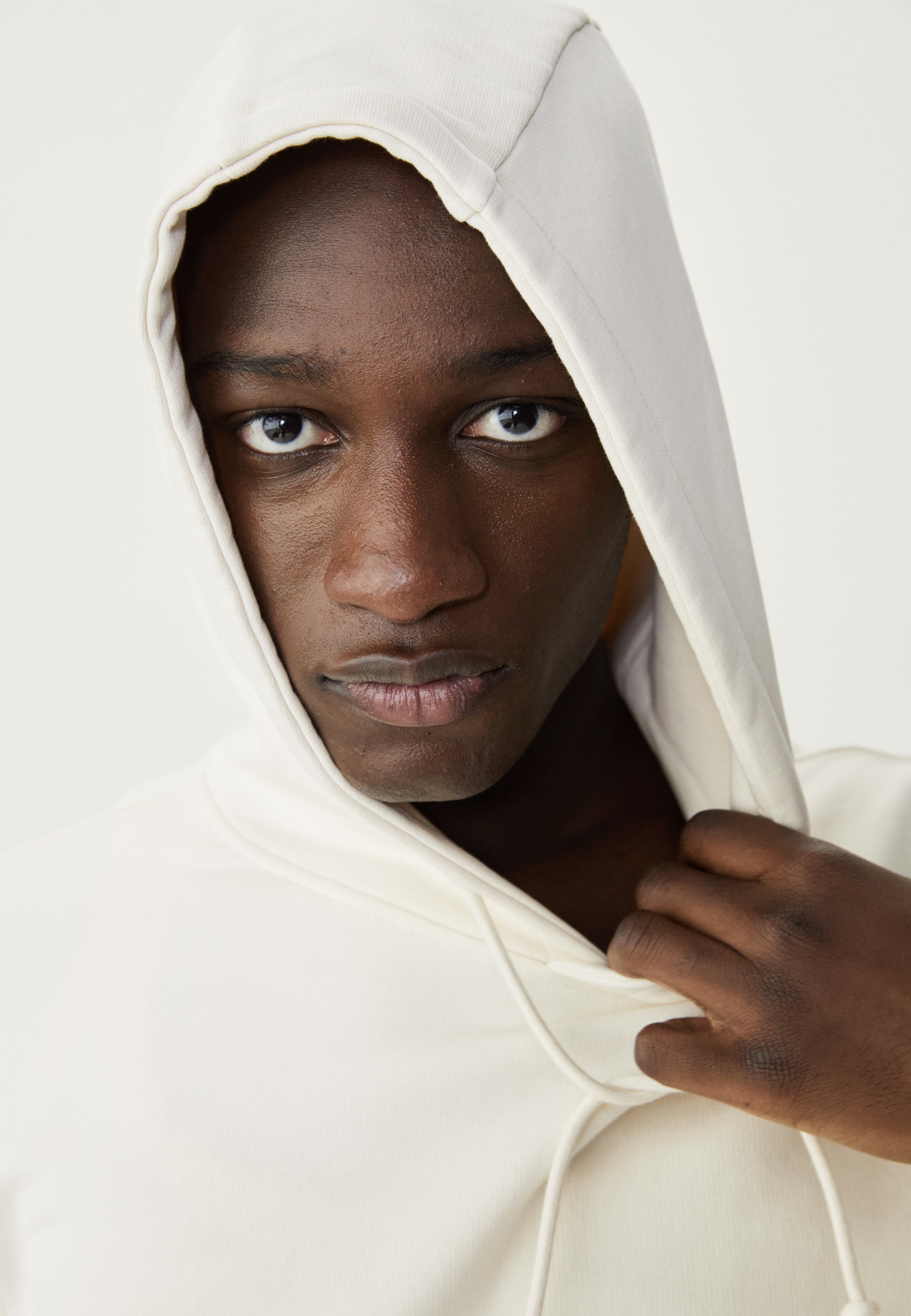 Vous nous avez remonté que le principal problème de vos sweats à capuche, c’est la déformation. On a donc choisi une densité de maille de 420g/m2 suffisamment lourde pour limiter la détente. Et après avoir retourné le problème dans tous les sens, on a supprimé la poche kangourou : avec un tissu 100% coton, cette poche finit toujours par se détendre et bailler.