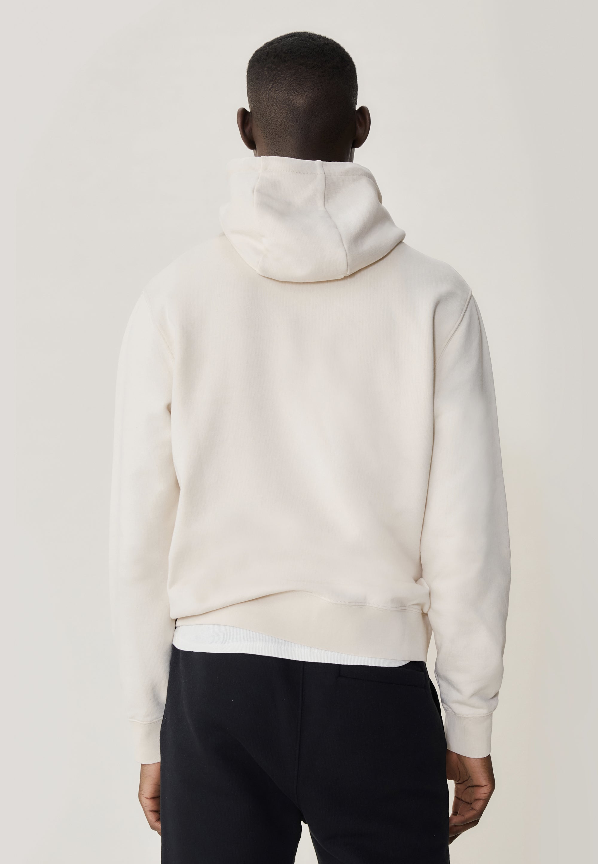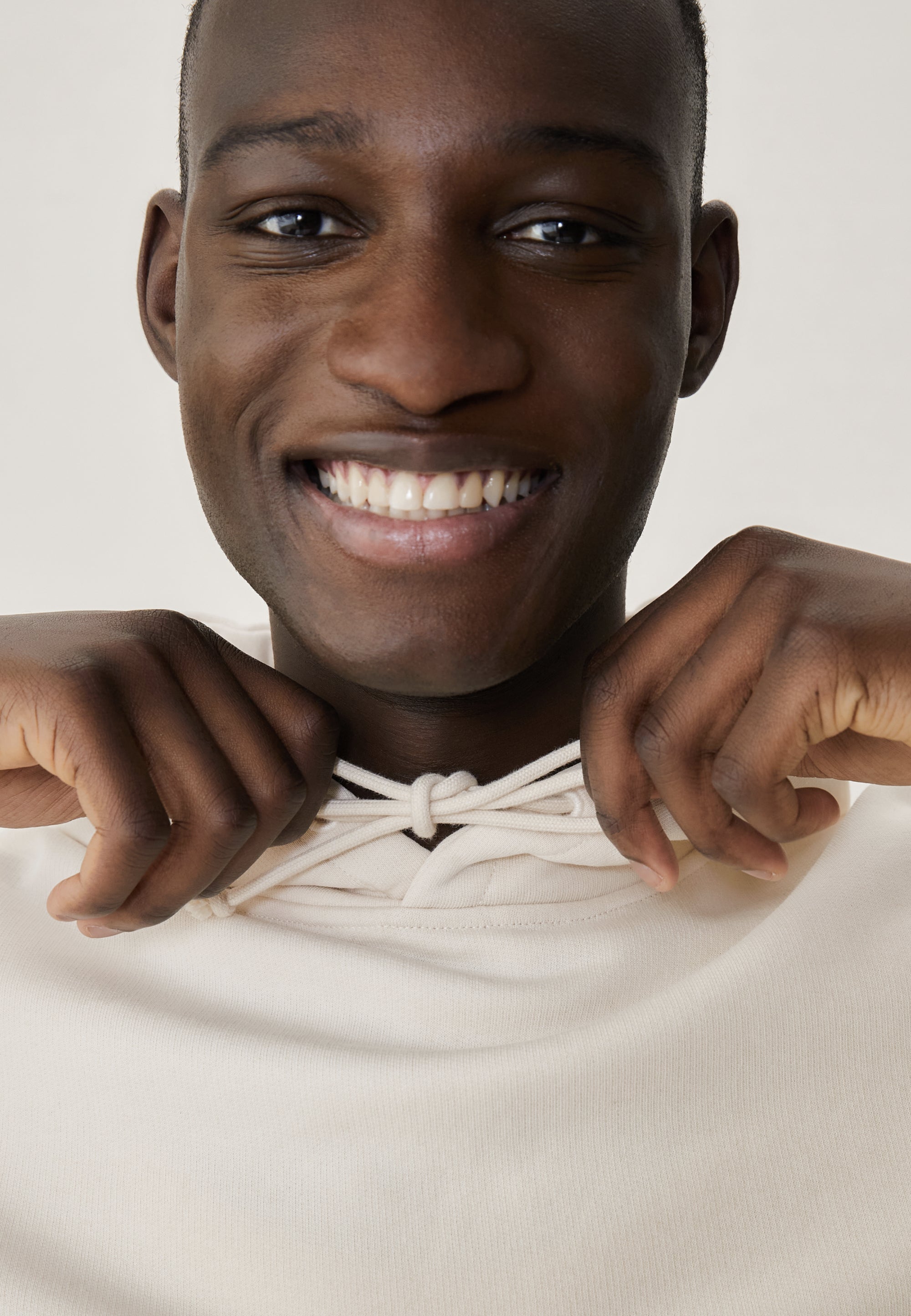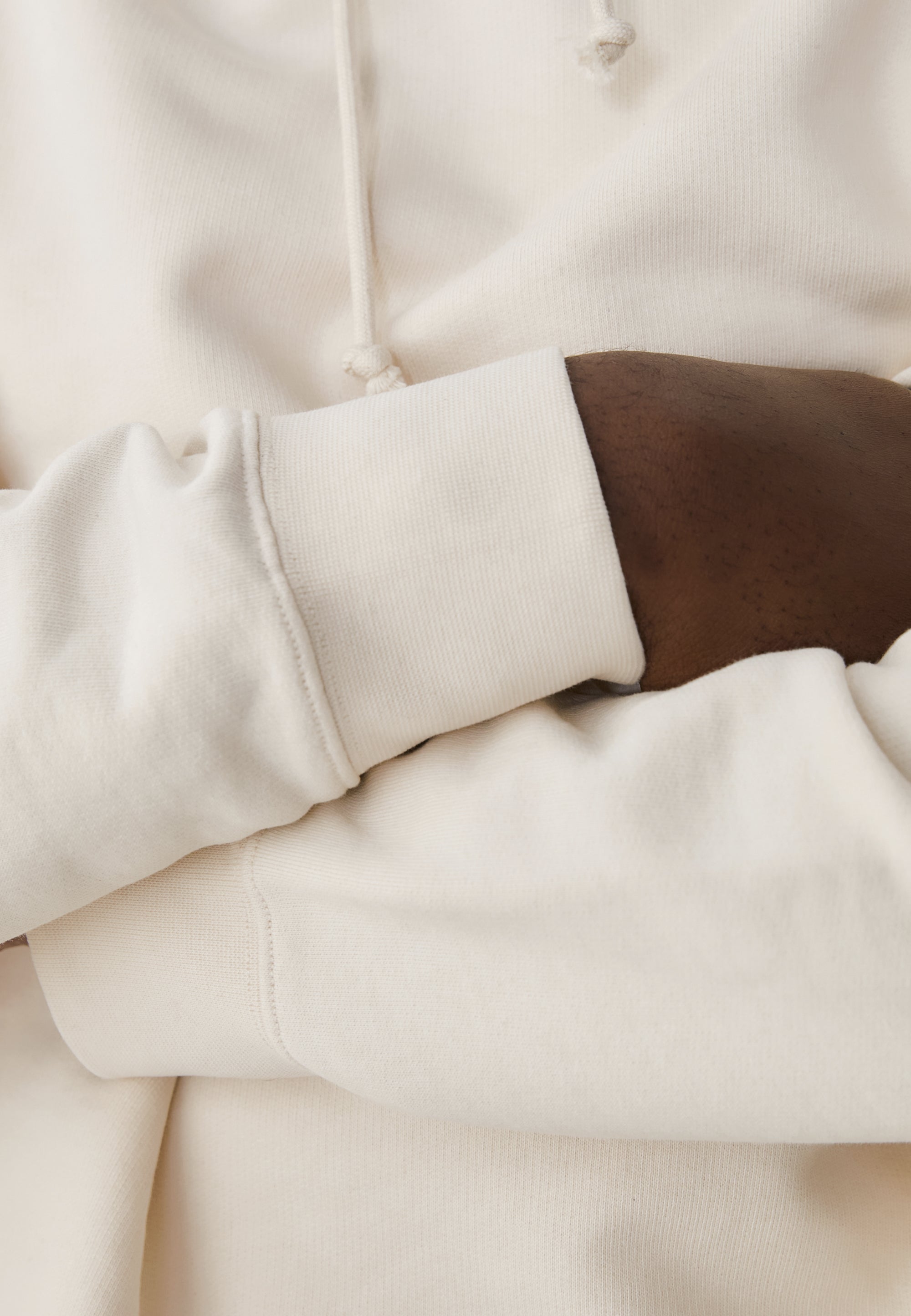 Ce sweat à capuche restera en très bon état, sans jamais boulocher. Il pourra légèrement se détendre. La couleur écru pourra légèrement s'éclaircir au fil des lavages (ce qui est dû aux agents azurants présents dans les lessives).