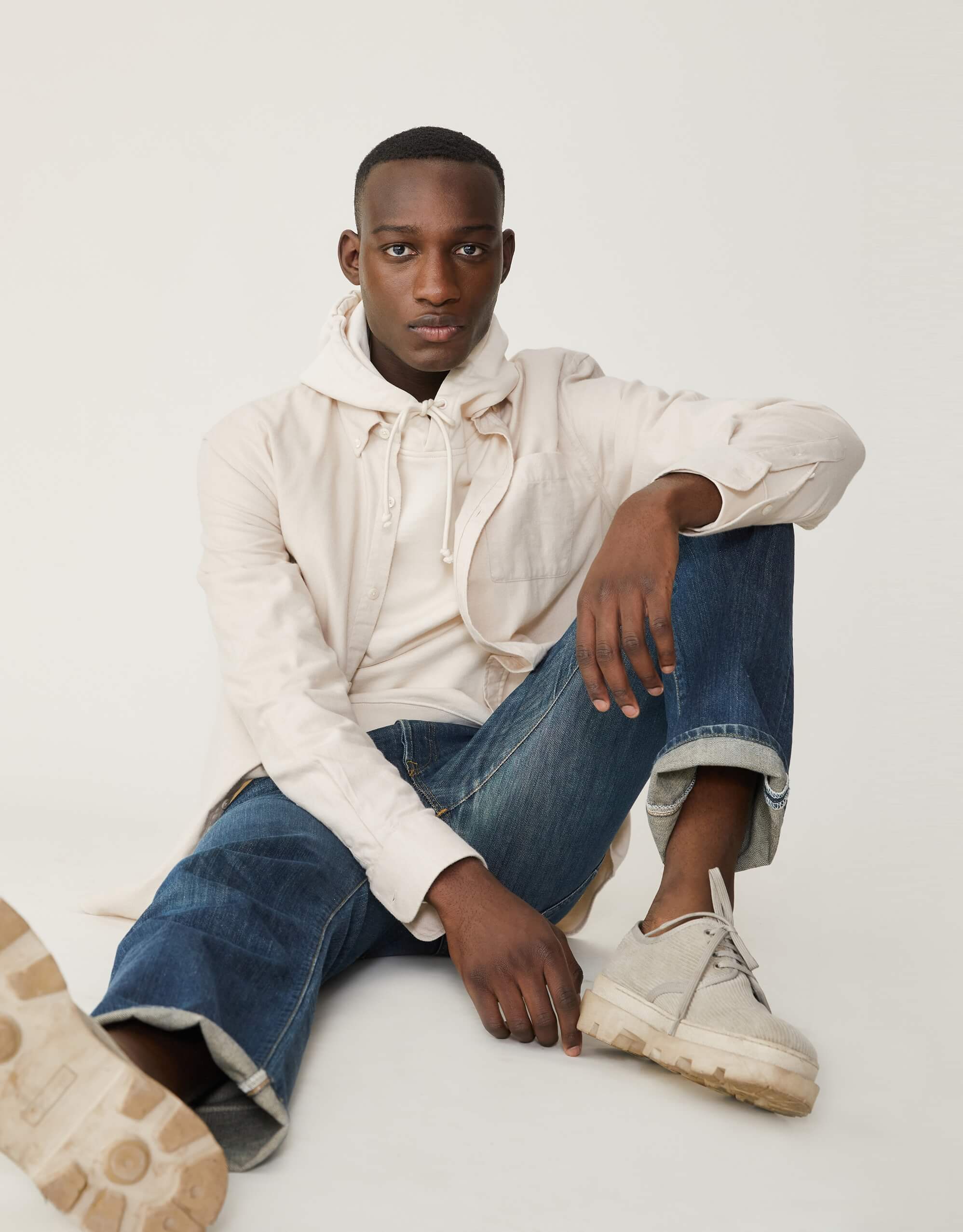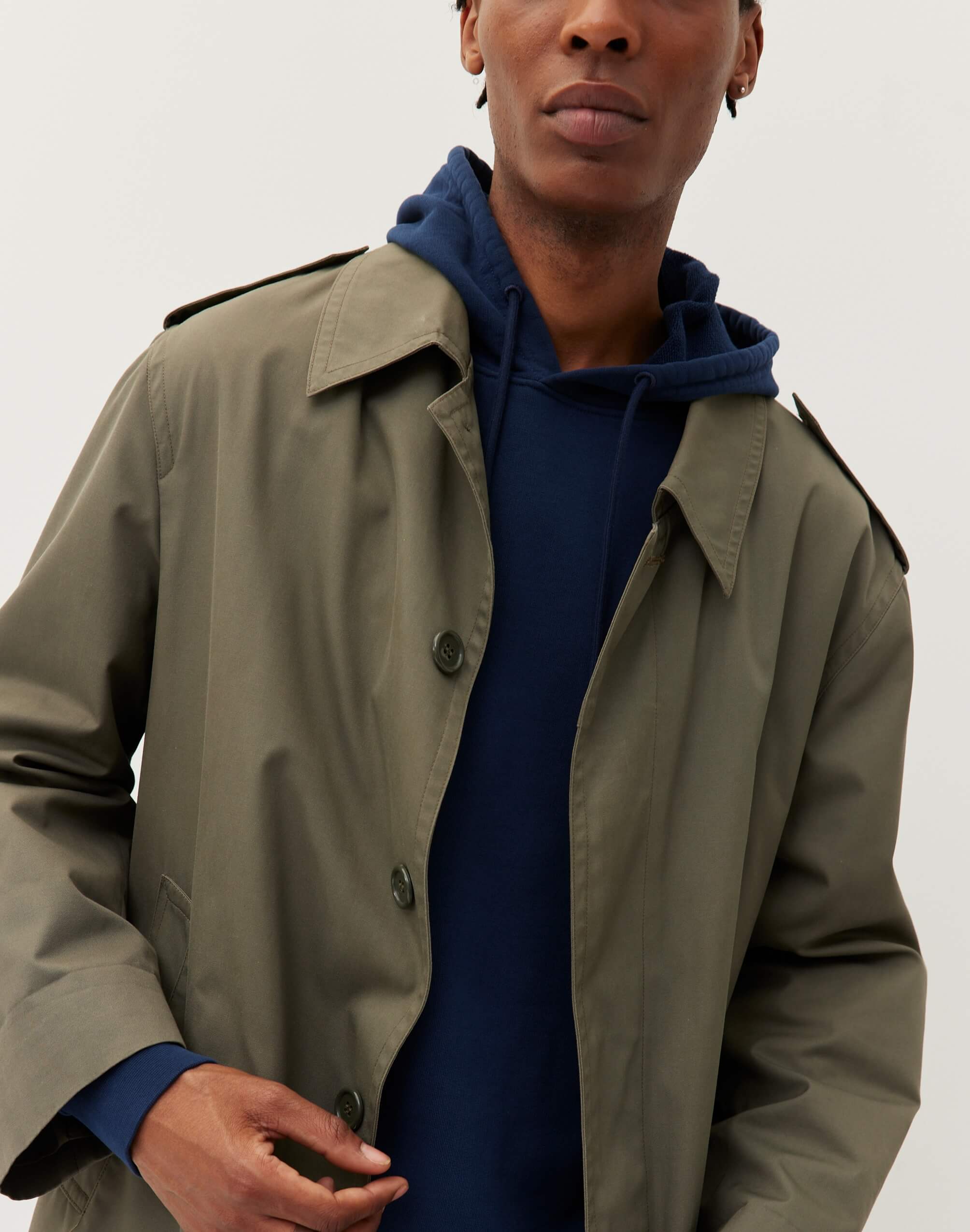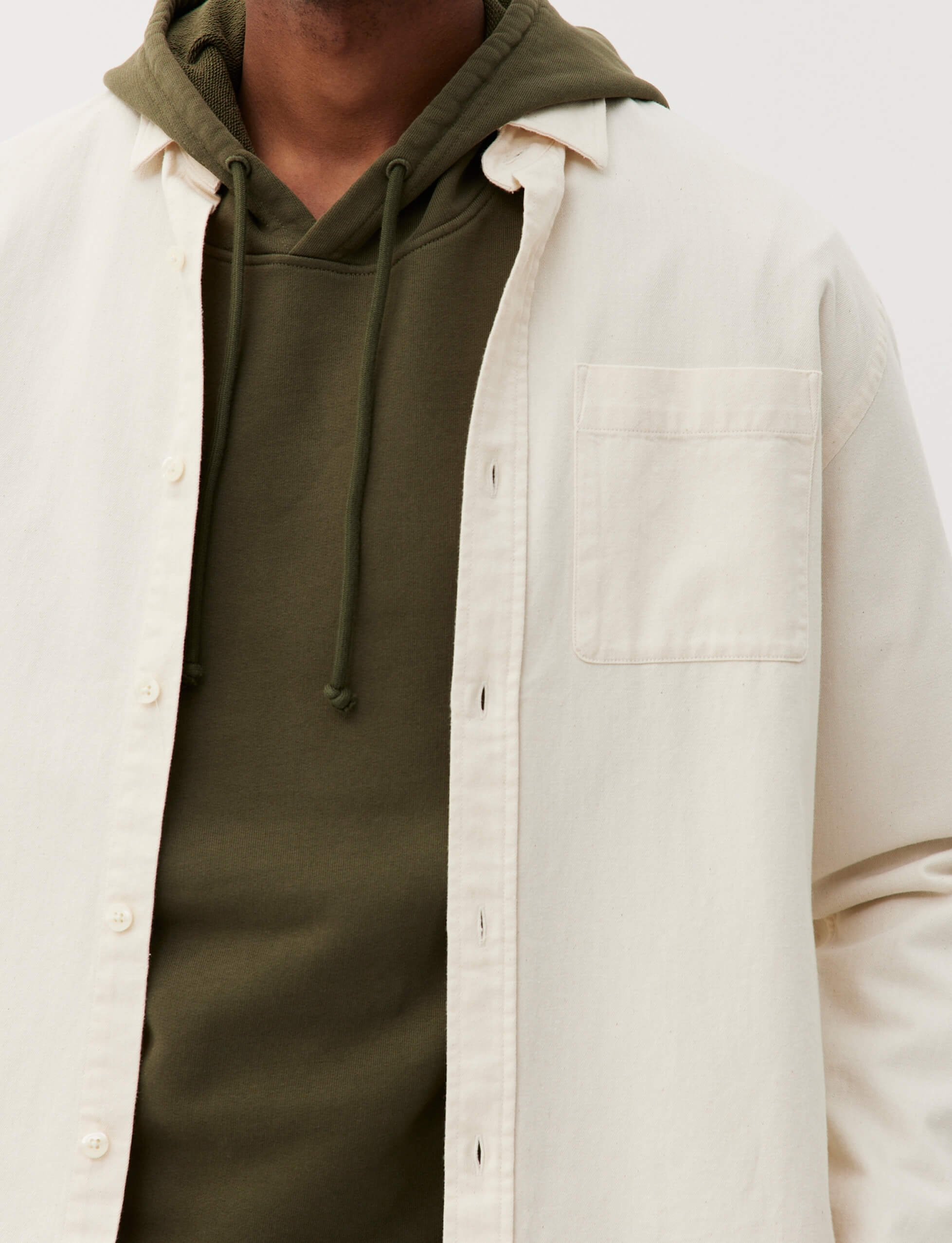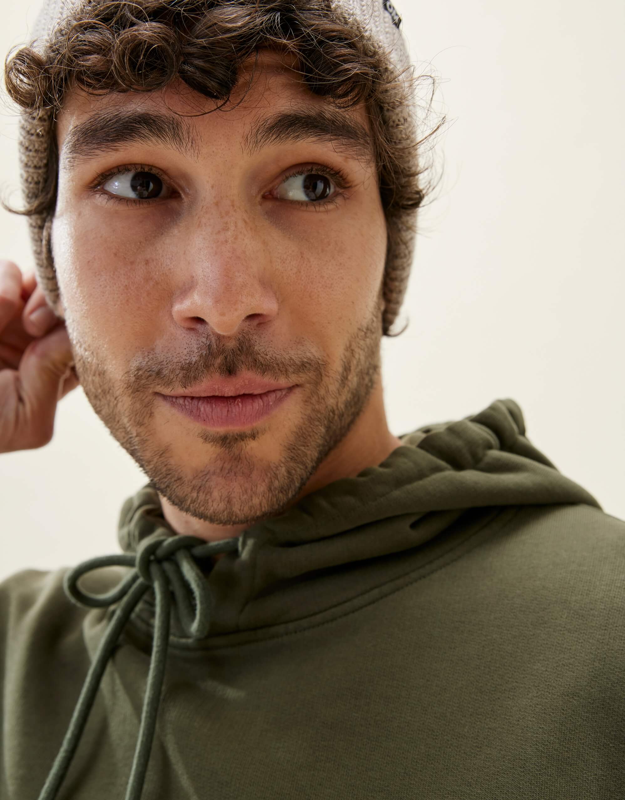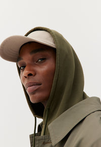Pour ce sweat à capuche, on a développé un molleton dense (420g/m2) et 100% coton bio pour qu’il garde une belle tenue – on a juste ajouté un fil d’élasthanne dans la ceinture et les poignets pour éviter qu’il se détende. Et on a renoncé à la poche kangourou sur le devant, qui finit toujours par se détendre avec le temps.