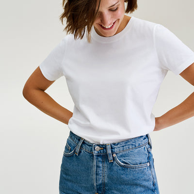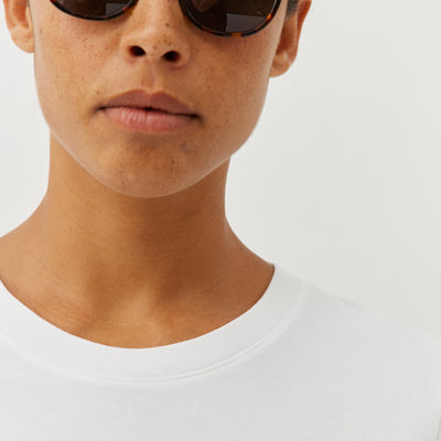 Le classique du vestiaire, mais avec des détails qui comptent. Un col fin et pas trop ouvert pour l'élégance. Un tissu plutôt dense pour un joli tombé et pour limiter la déformation, les trous… et la transparence. Et parce que l'éthique, c'est au moins aussi important que la qualité, il est fabriqué au Portugal et 100% coton bio.