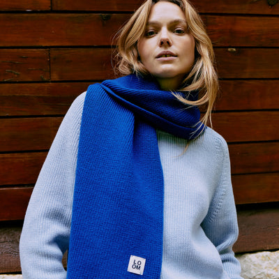 Cette écharpe est 100% laine : cette fibre emprisonne près de 80 % d'air, ce qui en fait le meilleur isolant naturel. Elle est suffisamment longue pour faire deux tours de cou et on a choisi un point dense en “maille perlée” pour que l’air froid n’atteigne jamais votre gorge.