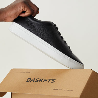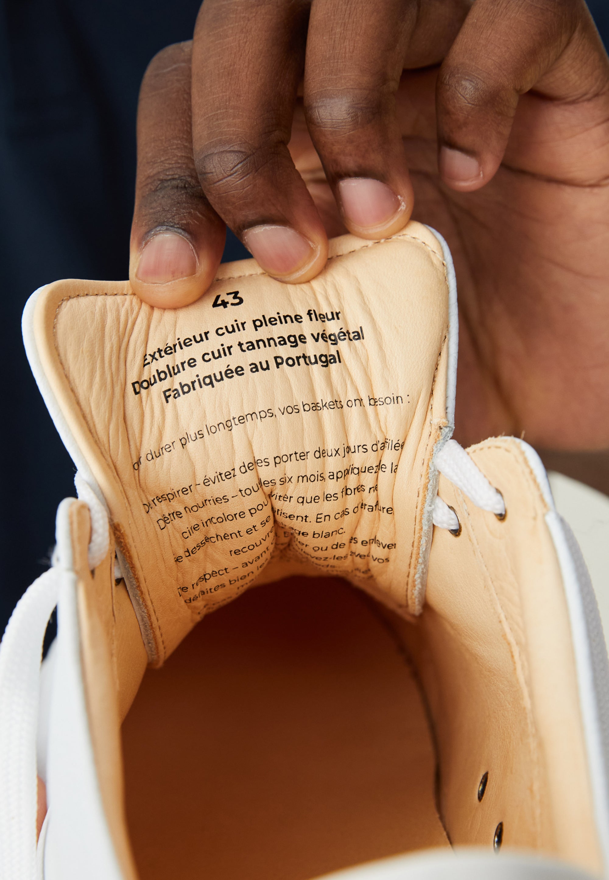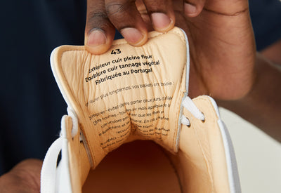 La plupart des marques de basket (comme une célèbre à trois bandes) utilisent du cuir recouvert, avec un aspect un peu “plastique”. Son avantage ? Il s’érafle un peu moins vite. Son problème ? Il est moins respirant et surtout, il craque plus vite au niveau des plis. On a préféré un cuir “pleine fleur” moins recouvert et donc plus respirant. Conséquence : sur la version blanche, des éraflures pourront apparaître un peu plus vite que la moyenne. Mais rien d’irréversible (contrairement aux craquelures) : ces baskets dureront longtemps si vous les entretenez régulièrement (et promis, ce n'est pas très compliqué).