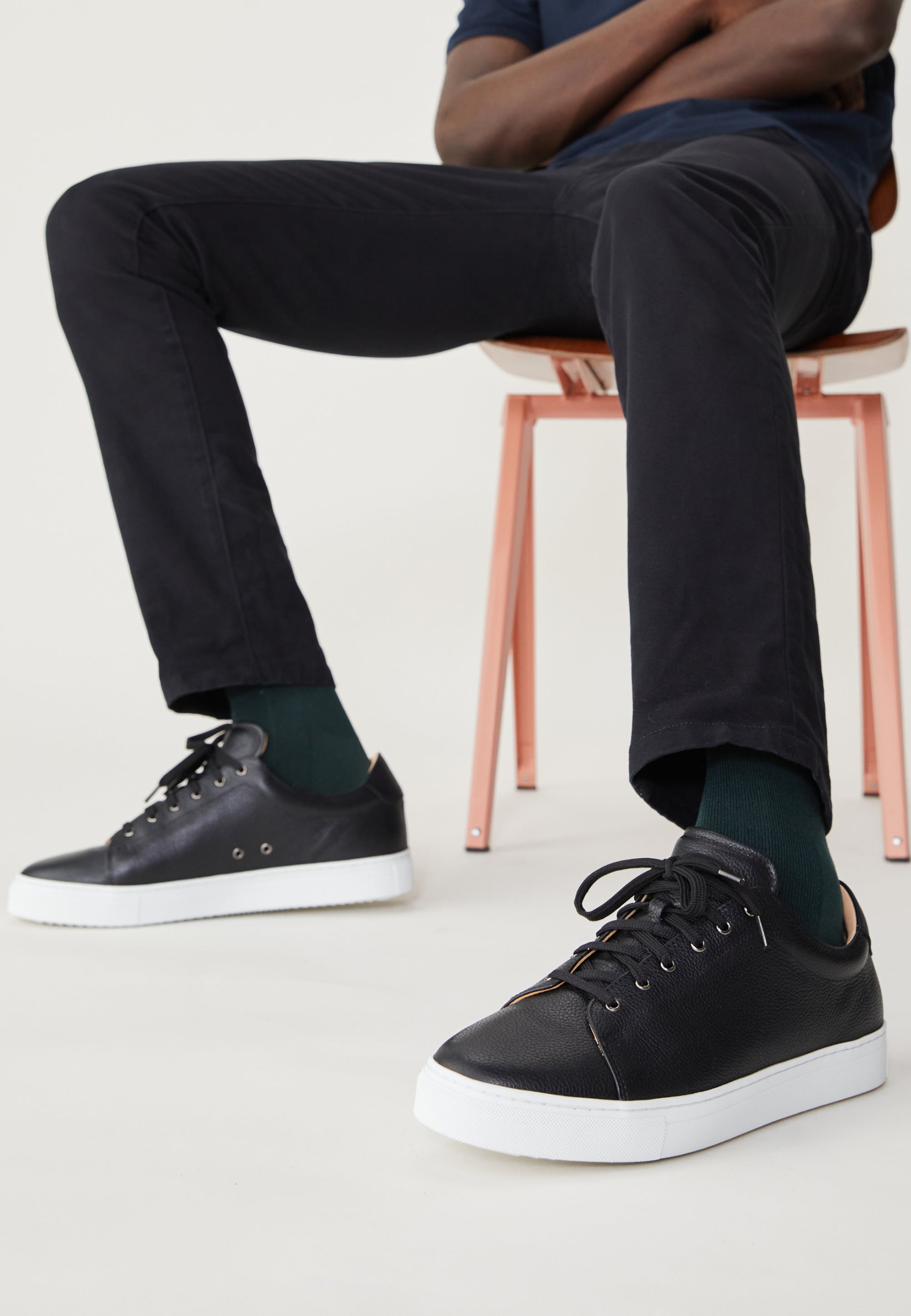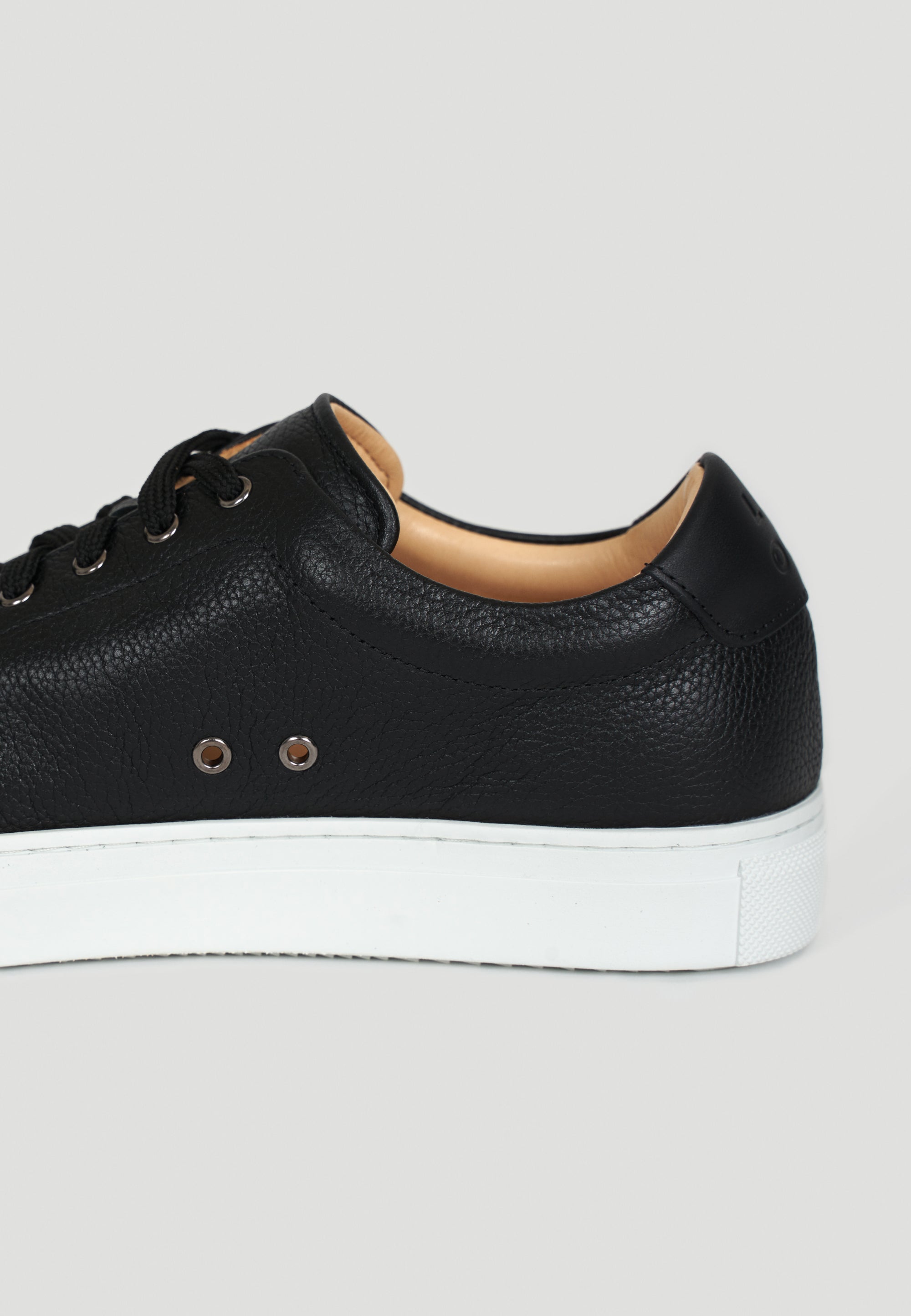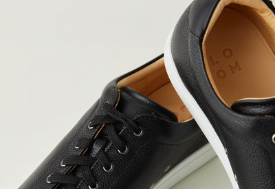 - Des baskets de ville au look très soigné : un beau cuir grainé et pas “plastifié”, peu de coutures pour une ligne épurée, un logo discret gravé sur l’arrière.