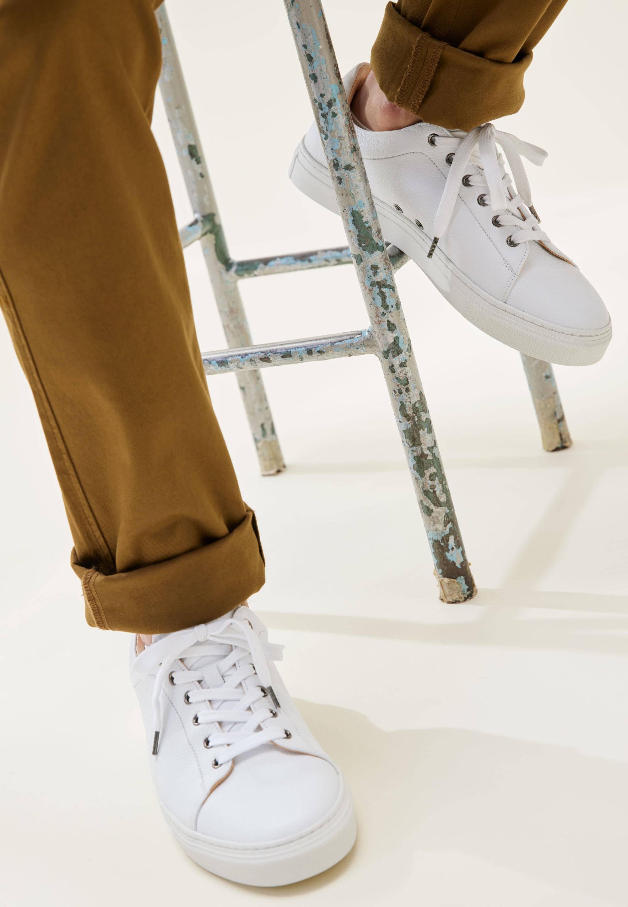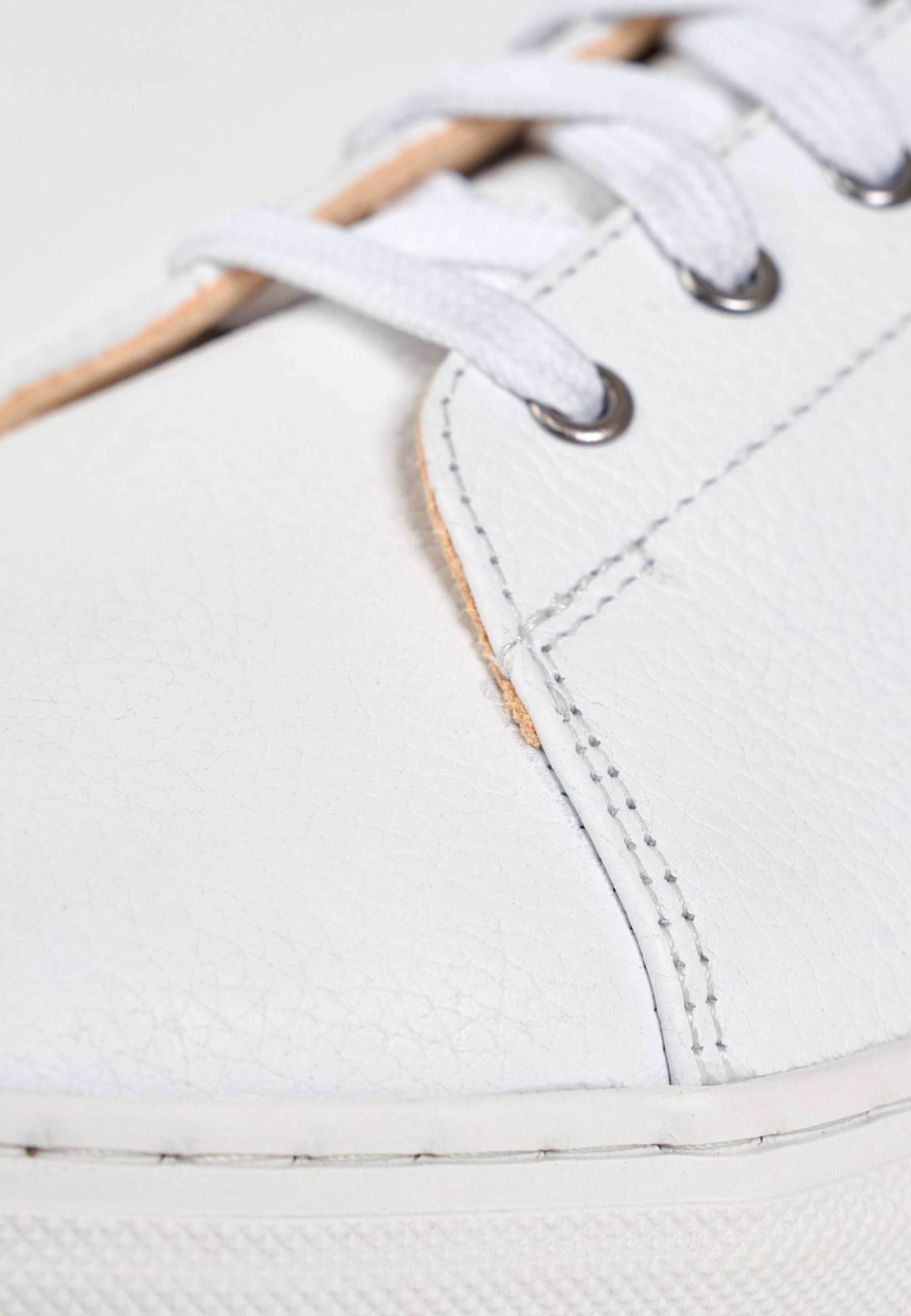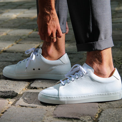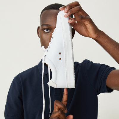 La deuxième chose à comprendre, c’est que le blanc, c’est salissant et qu'on verra les petites taches et éraflures plus facilement que sur une couleur foncée. D'ailleurs, sur notre cuir pleine fleur, ces éraflures pourront apparaître un peu plus vite que sur certaines baskets blanches dont le cuir est plastifié (comme celles d'une célèbre marque à trois bandes) mais qui vont craqueler plus vite au niveau des plis et durer au final moins longtemps. Pour nettoyer le cuir blanc, plein de tutos sont disponibles sur YouTube, mais pour être sûr de vous donner des conseils qui fonctionnent, on les a (presque) tous testés pour vous : voici sur ce lien le résultat avant/après sur des prototypes de baskets Loom.