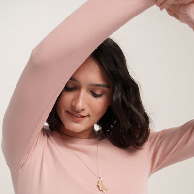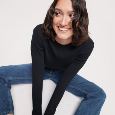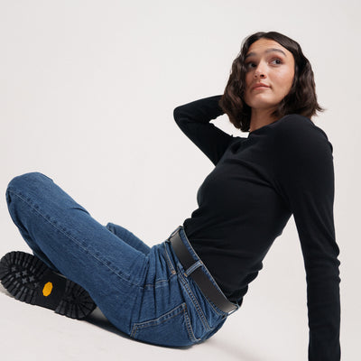C’est la première génération de notre t-shirt manches longues, mais on ne part pas de zéro : on a repris la même matière que notre débardeur côtelé (étudiée pour ne pas se déformer).